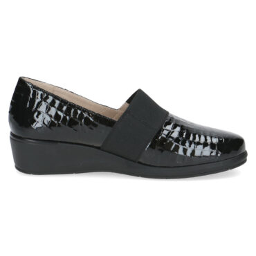 Slip on with wide elastic vamp. Leather with stamped crocs upper. Rubber sole for extra cushion and comfort. Ideal for those on their feet looking for something dressier then a runner.