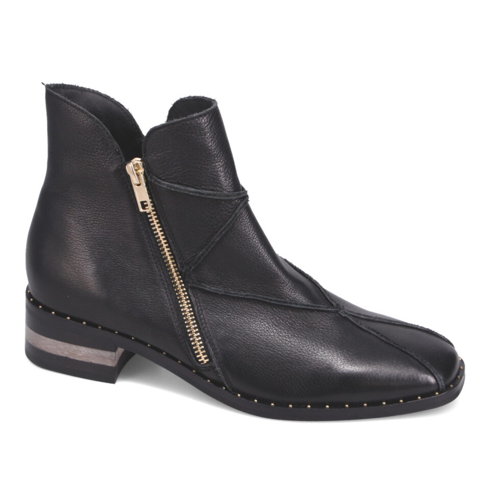 Chelsea boot design with added details like a low block heel and nailhead studs. The Forda boot is a slip-on style, made with leather uppers and features a double elastic gusset for easy off and on. Ideal for the work place or a casual outing.