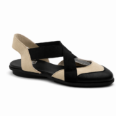 Arche’s Dinaby sandal combines comfort with refined style through its elasticated design and premium full-grain nubuck leather featuring a subtle grained texture. The minimal 2.2 cm heel provides gentle arch support, while the black Lactae Hevea® sole delivers durability and natural grip. Available in a versatile bronze and black tone, this sandal transitions effortlessly from casual to polished occasions.