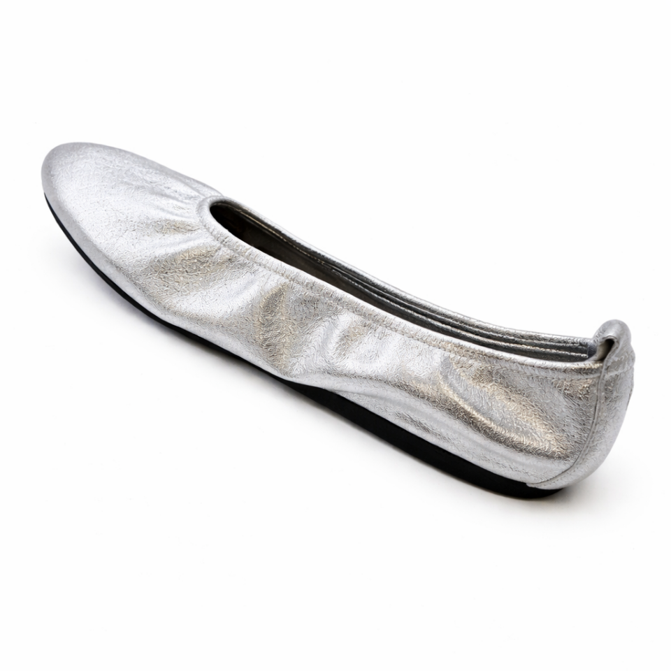 The Laius by Arche is a classic ballet design. Crafted from metallic leather, it features a flexible latex sole for comfort and durability. The design is monochrome, with a beautifully rounded toe that adds elegance. The interior is unlined, enhancing the shoe’s flexibility, while the slightly elevated heel section of the sole provides added comfort for all-day wear.