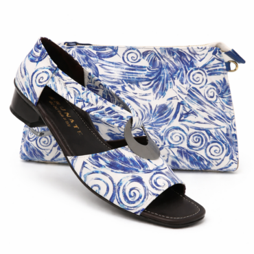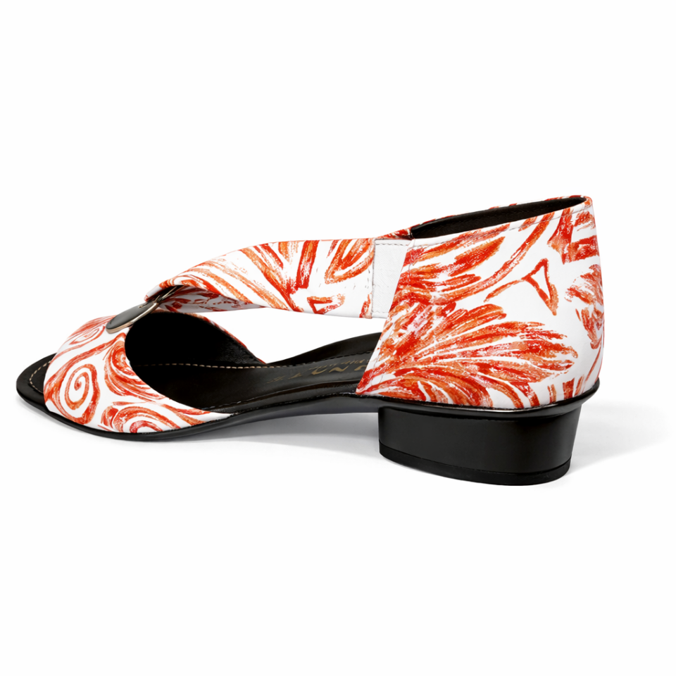 A Brunate  classic. The ring sandal in a fun floral leather print material. Rubber inserts in the sole prevent slipping. Wear for fun , business or formal