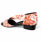 A Brunate  classic. The ring sandal in a fun floral leather print material. Rubber inserts in the sole prevent slipping. Wear for fun , business or formal