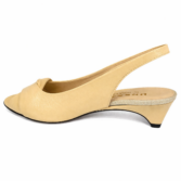 Brunate Kitten heel 1/2 inches. This open toe sling features a functional buckle leather uppers and leather linings with a leather sole.