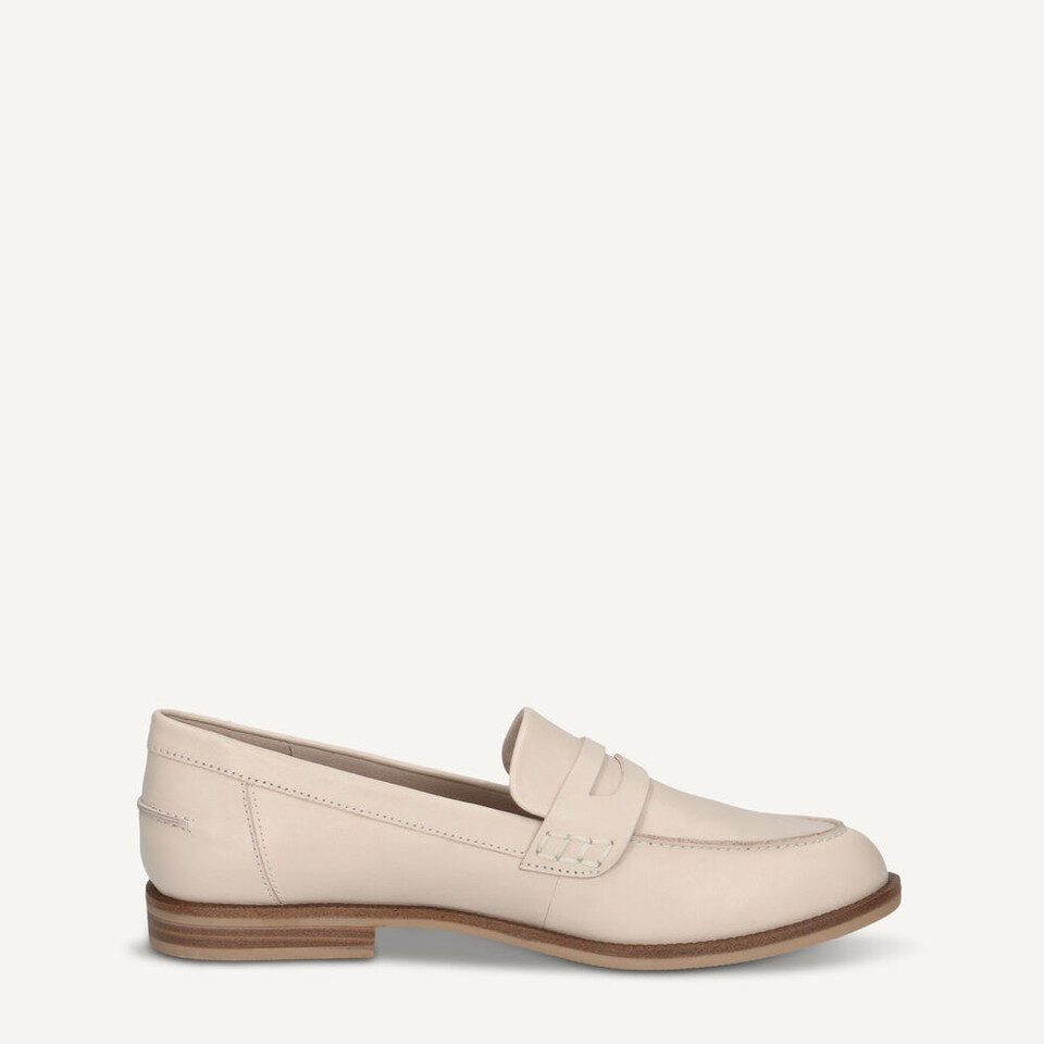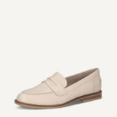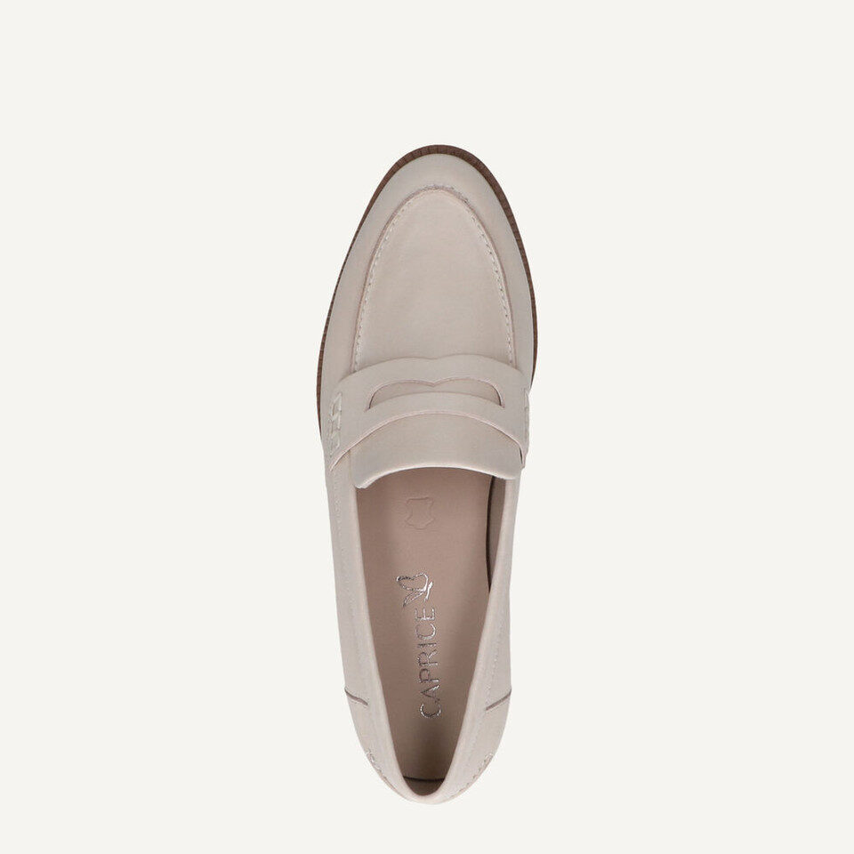 Off white steak penny loafer from Caprice. Slightly tapered toe tailored as opposed to chunky. Soft leather upper with padded insoles and comfort flex outsole.