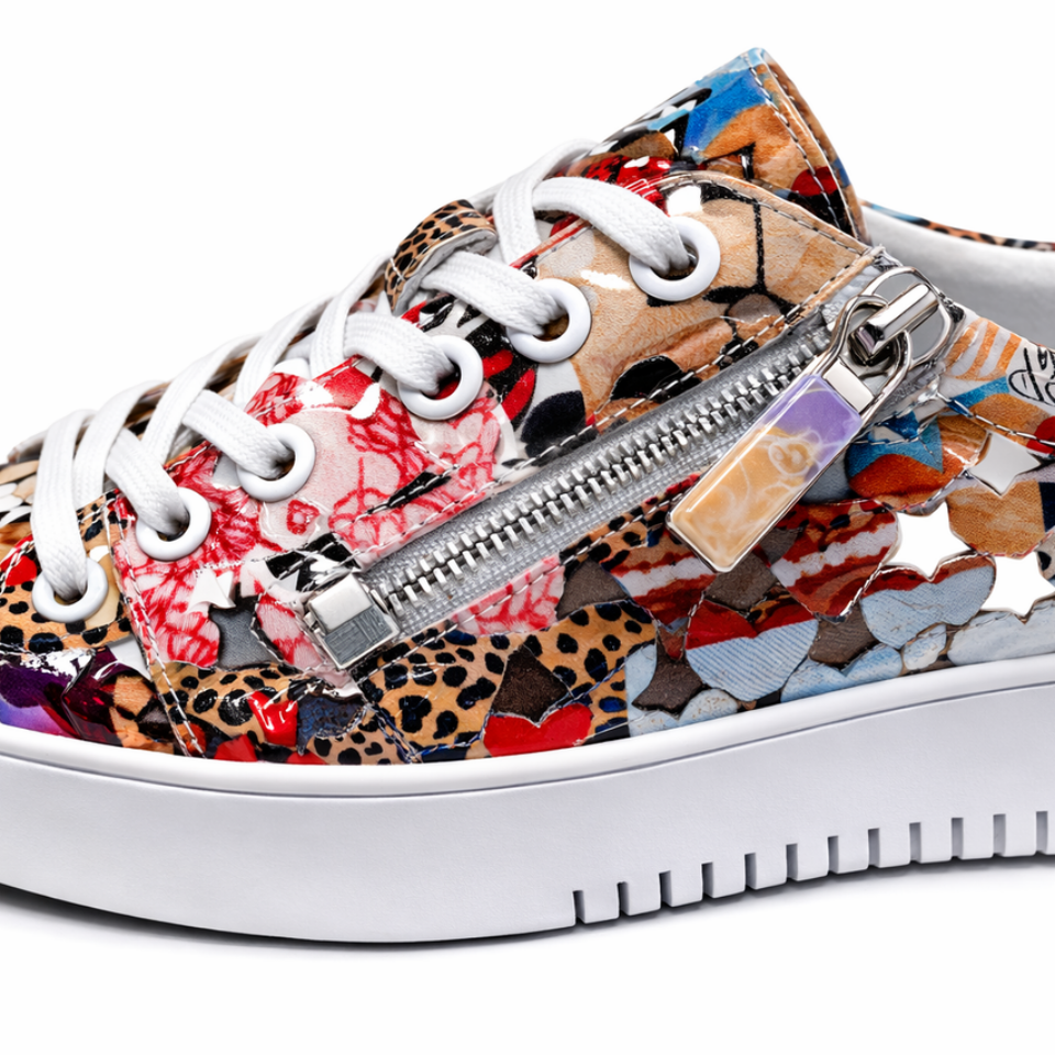 Amp up your casual look with this leather sneaker from Django and Juliette. Resting atop a chunky platform sole, the Leitha is a laser-cut design that is easy to style. It finishes with a lace-up front with side-zip trim.