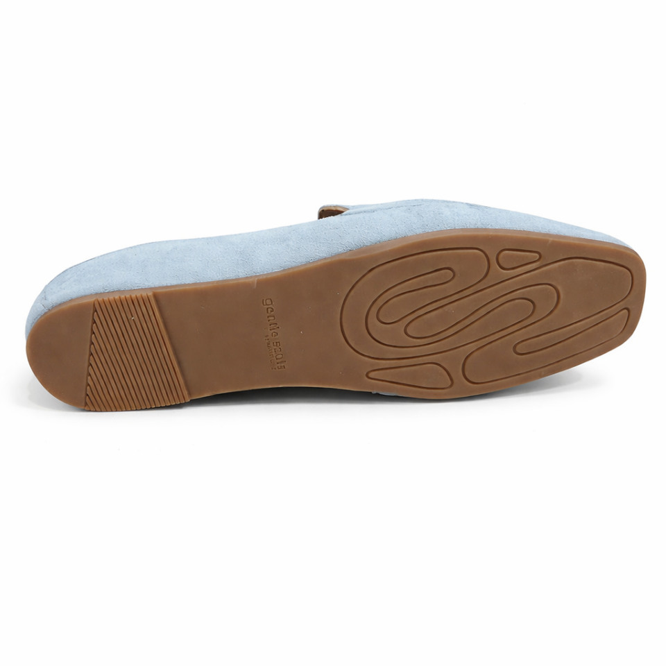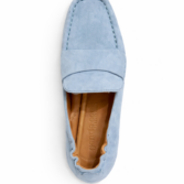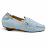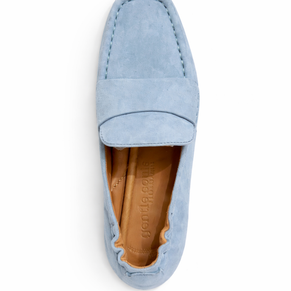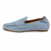 Very soft loafer in suede leather with square toe. Features include padded insoles and soft leather linings and a flex rubber outsole.