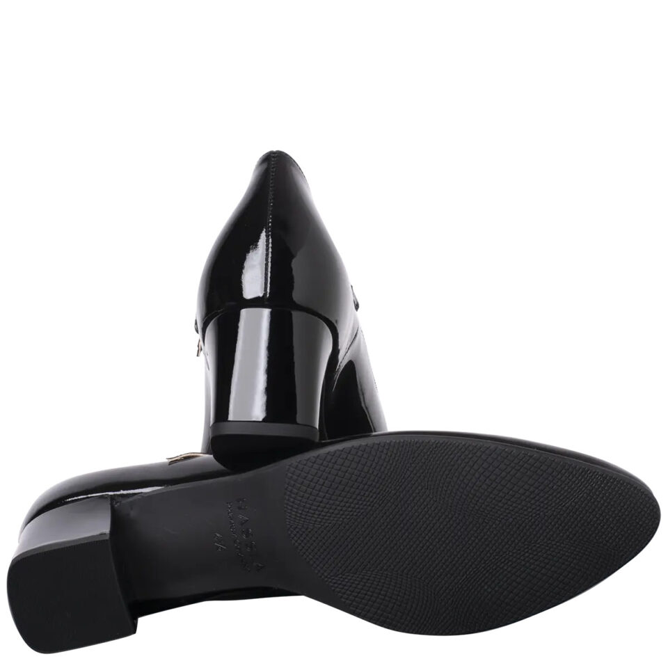 With the RAVENNA pumps, you can wear Mary Janes to the office, a Christmas party, or a dinner. The combination of the feminine silhouette and black patent leather creates a look that is both modern and elegant. The tonal block heel adds height while still ensuring a comfortable fit. The characteristic strap provides a visual accent and excellent support. Lined with genuine leather, these heeled shoes offer exceptional comfort . The arch support insole is removable. So this pump is not just dressy but supportive as well.