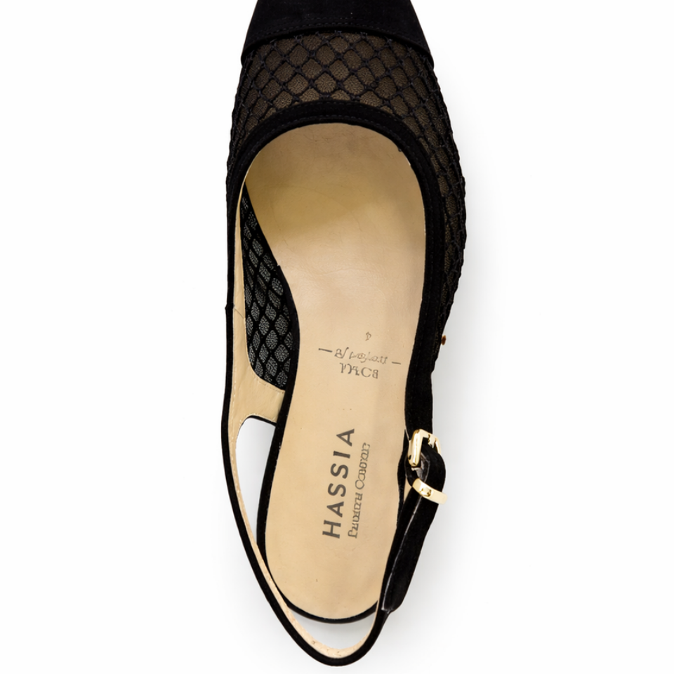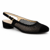 Elegance done low. The Hassia sling features a padded insole, non slip outsole and a beautiful mesh and sued upper. The sling strap includes a functional buckle and the heel is 25 mm with a wide modern round shape and base.