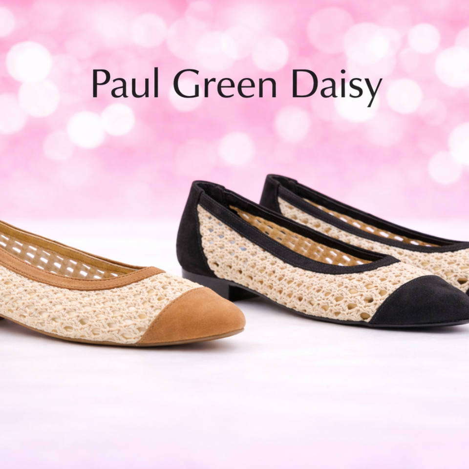 Woven leather in a traditional ballerina flat silhouette makes this style a summer must-have. Made from soft Italian leather, this Paul Green flat is easy on the feet and allows your toes to breathe, and a padded insole gives you all-day support.