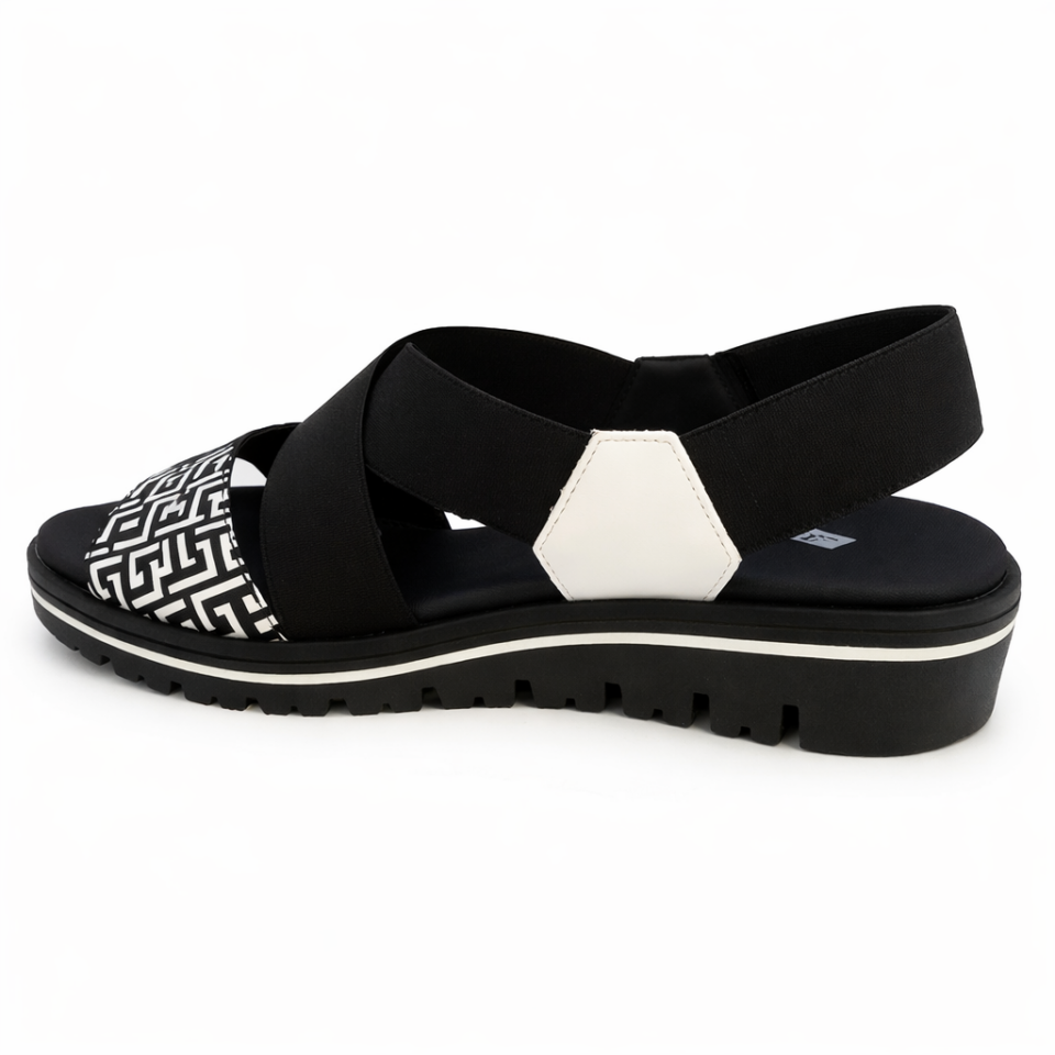 Light weight, flexible and oh so comfortable. This Pie Santo sandal features a fully removable padded footbed insole and lovely elastic bands which enclose and support the foot. Easy off and on this orthtoic friendly sandal includes a leather upper with leather linings and rubber outsoles.
