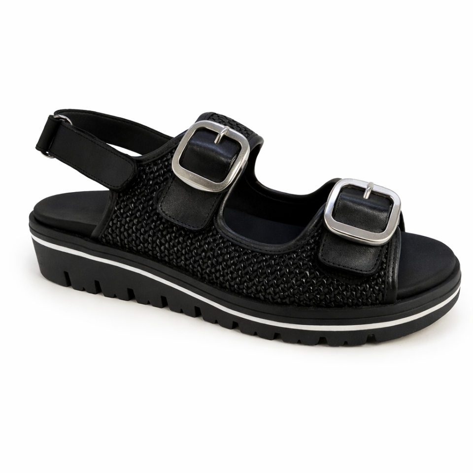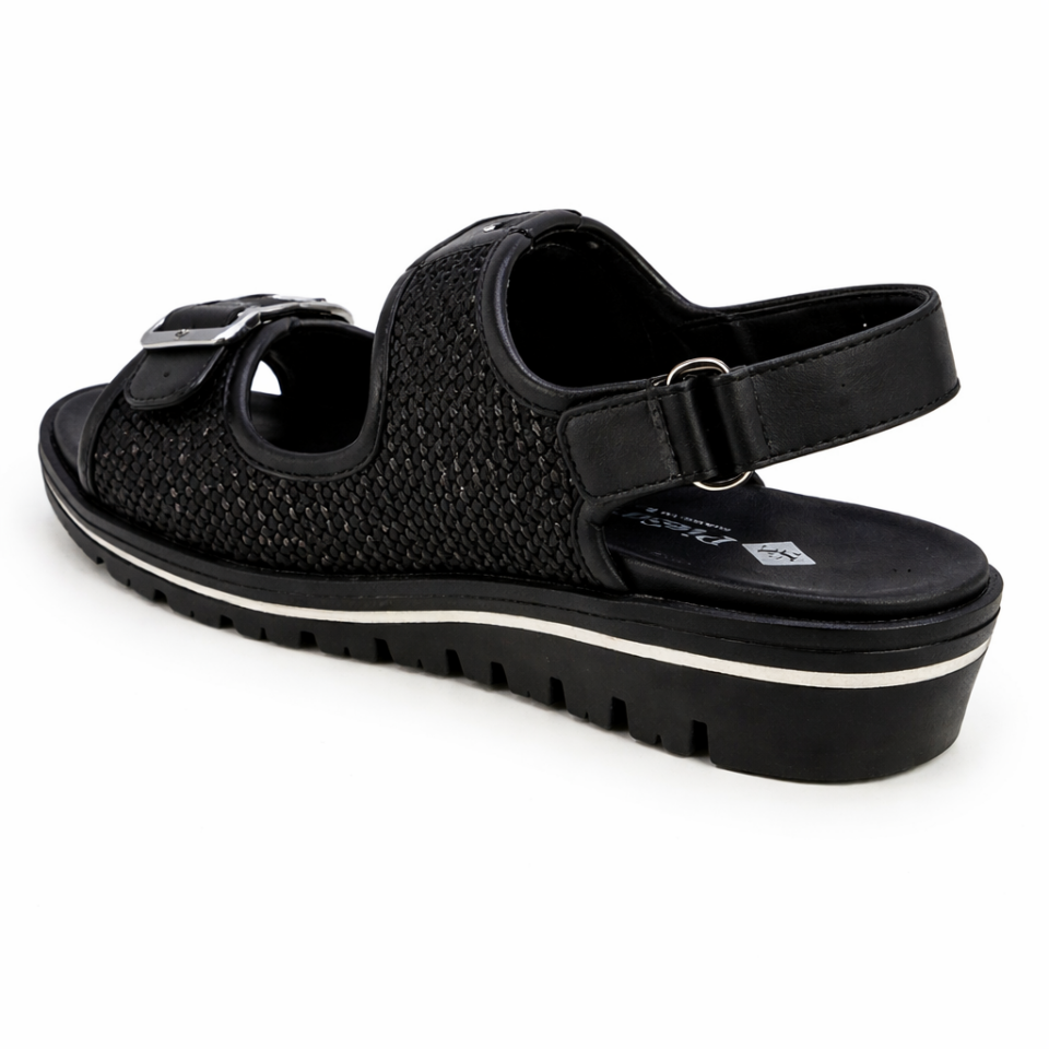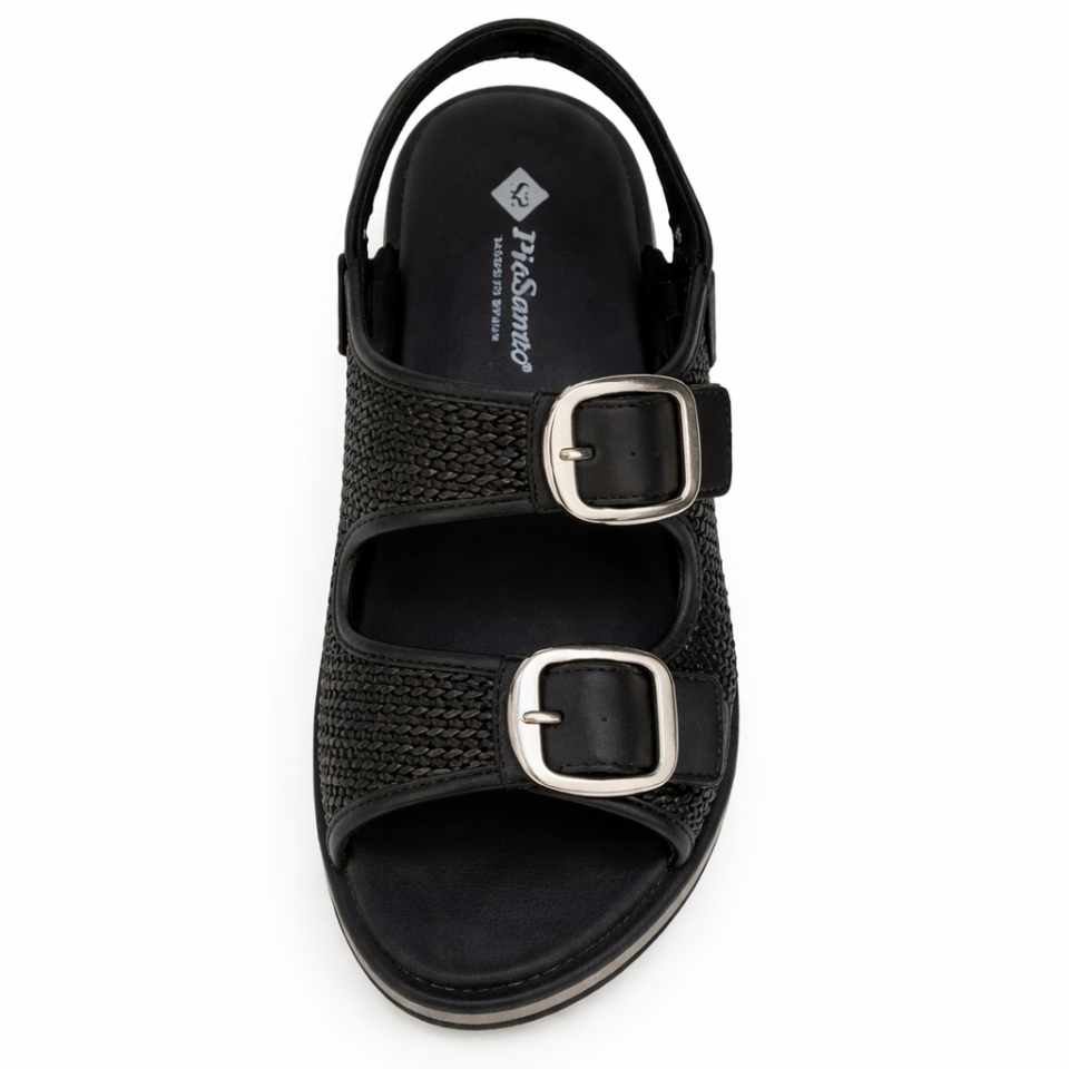 Made is Spain PieSanto is an ideal brand for a combination of style, comfort and support. This model features double velcro straps, braided leather, leather linings and insole. Footbed insoles are removable , orthotic friendly.