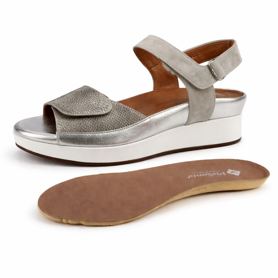 Made in Spain PieSanto offers the perfect blend of comfort and support. All leather uppers with leather linings and a light flexible outsole. Double velcro for an ideal fit and a removable support footbed, orthotic friendly.
