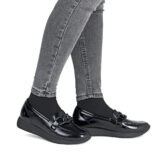 Comfort brought to perfection: these black remonte loafers are not only ultra stylish, they also score with their comfort features. The elastic bands allow for easy donning. The decorative chain gives the shoe that certain something. The Lite ‘n Soft technology with its ultra-light sole and padded and removable insole ensures a comfortable feeling. The loafers are equipped with a light microvelour lining.