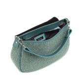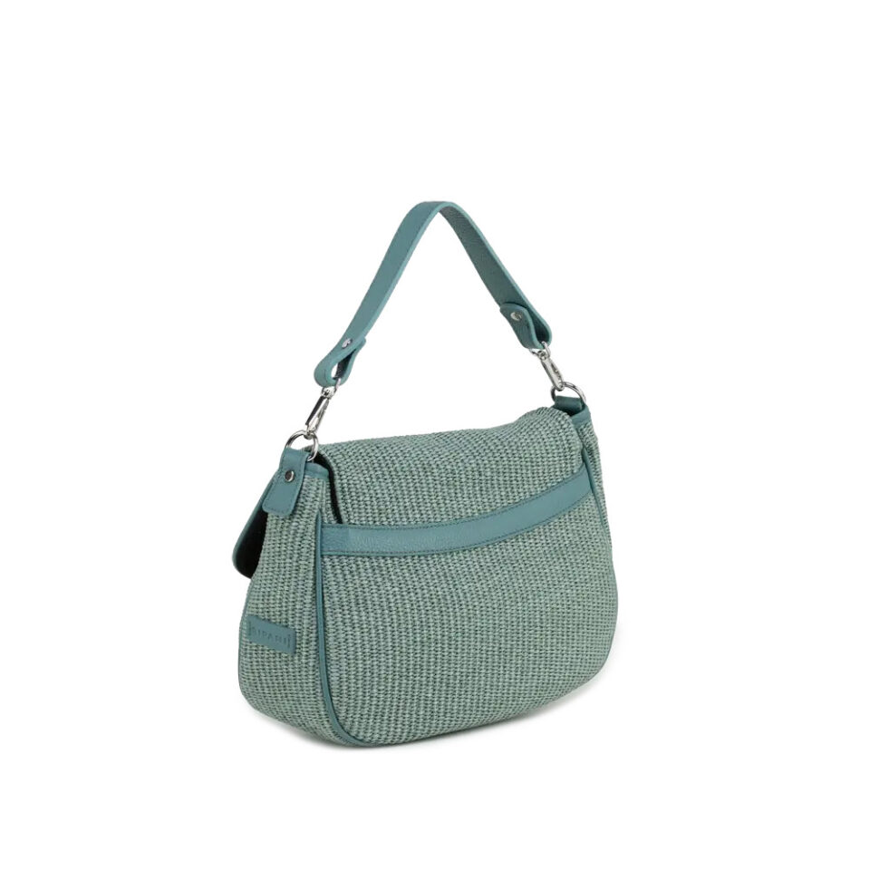 Raffia with genuine deer effect leather trim, nickel accessories