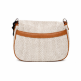 Raffia with genuine deer effect leather trim, nickel accessories