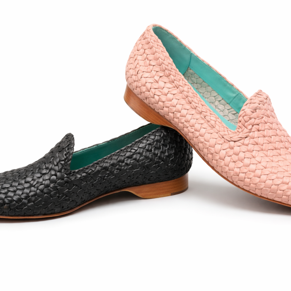 Wonderful tailored flat shoe. Very soft hand woven leather uppers and leather insole. Also the outsole is leather and the heel is a 3/4 inch stack.