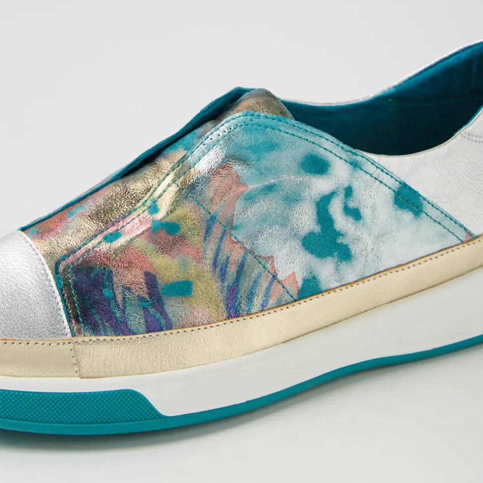 Enjoy the compliments in Ziera Ajaz slip on sneakers. Almost like wearing art these unique sneakers look great casual or semi casual.  The Ajaz features  leather uppers and a super soft footbed insole which offers both arch and metatarsal support. Available in an extra wide fit included are forefoot inserts allowing you to snug up the width.